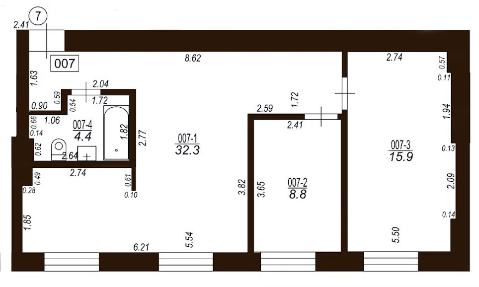| Dzīvoklis Nr. 7 | 3 | 3 | 61.4 | N/A | Izīrēts | |