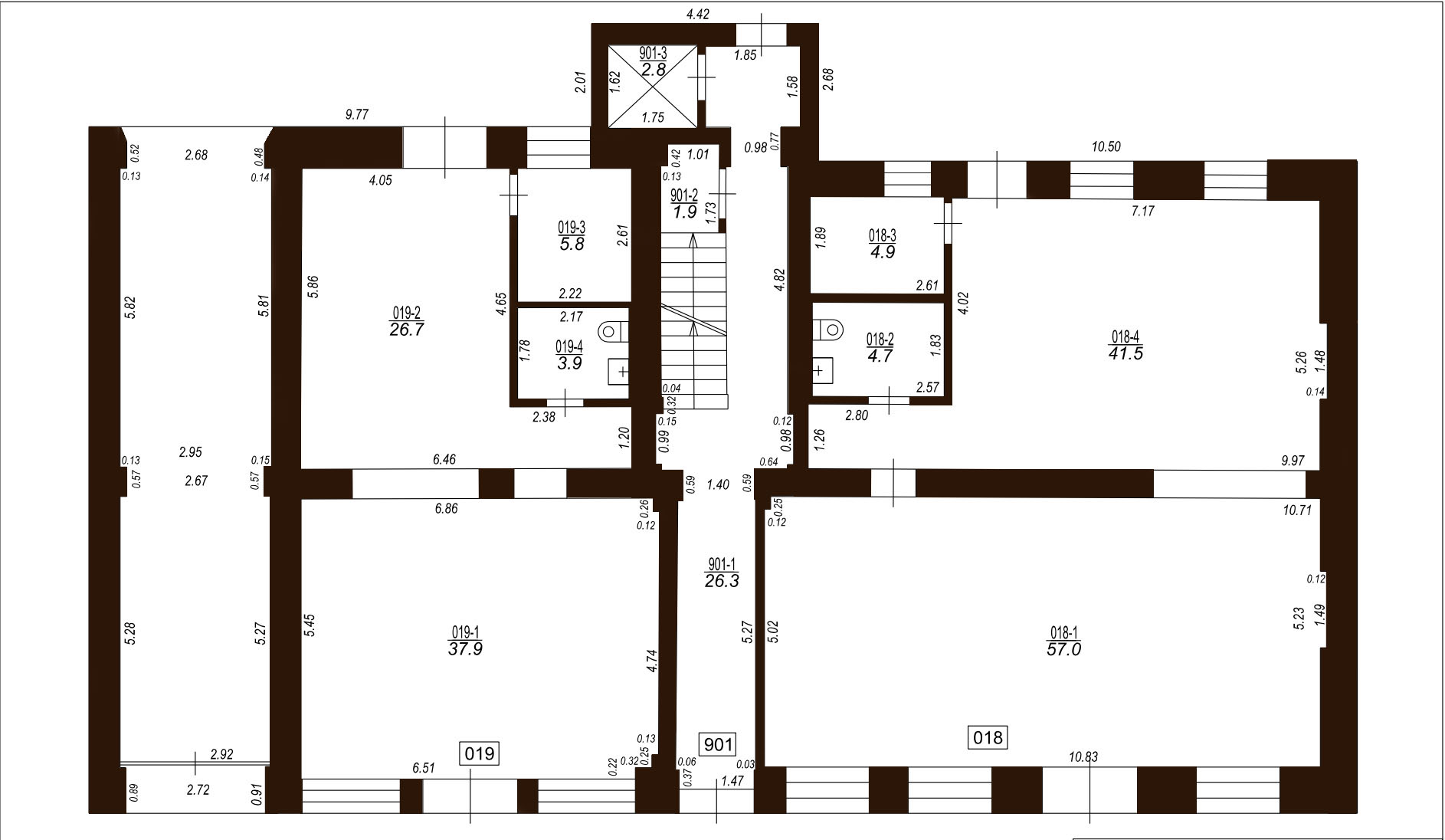 Pieejamās noliktavu telpas pagrabā ir 3.9 – 13.6 m²