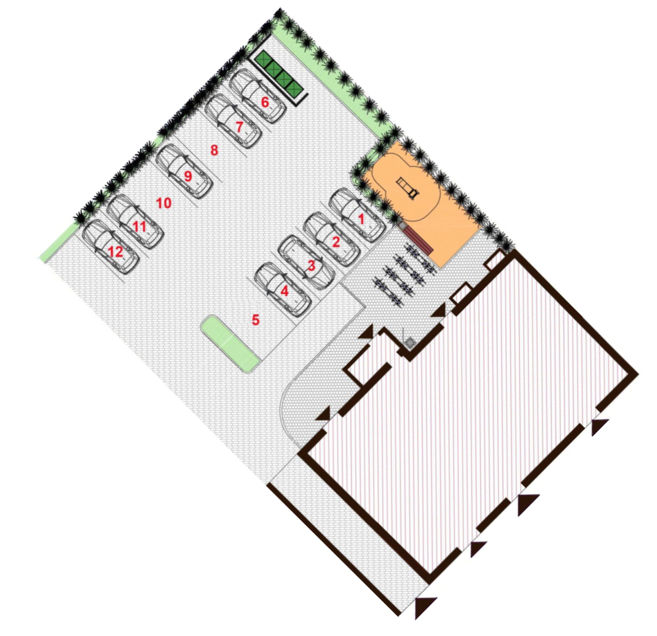 Labiekārtota teritorija ar bērnu atpūtas zonu un ērtu elektroauto uzlādes iespēju iedzīvotājiem.