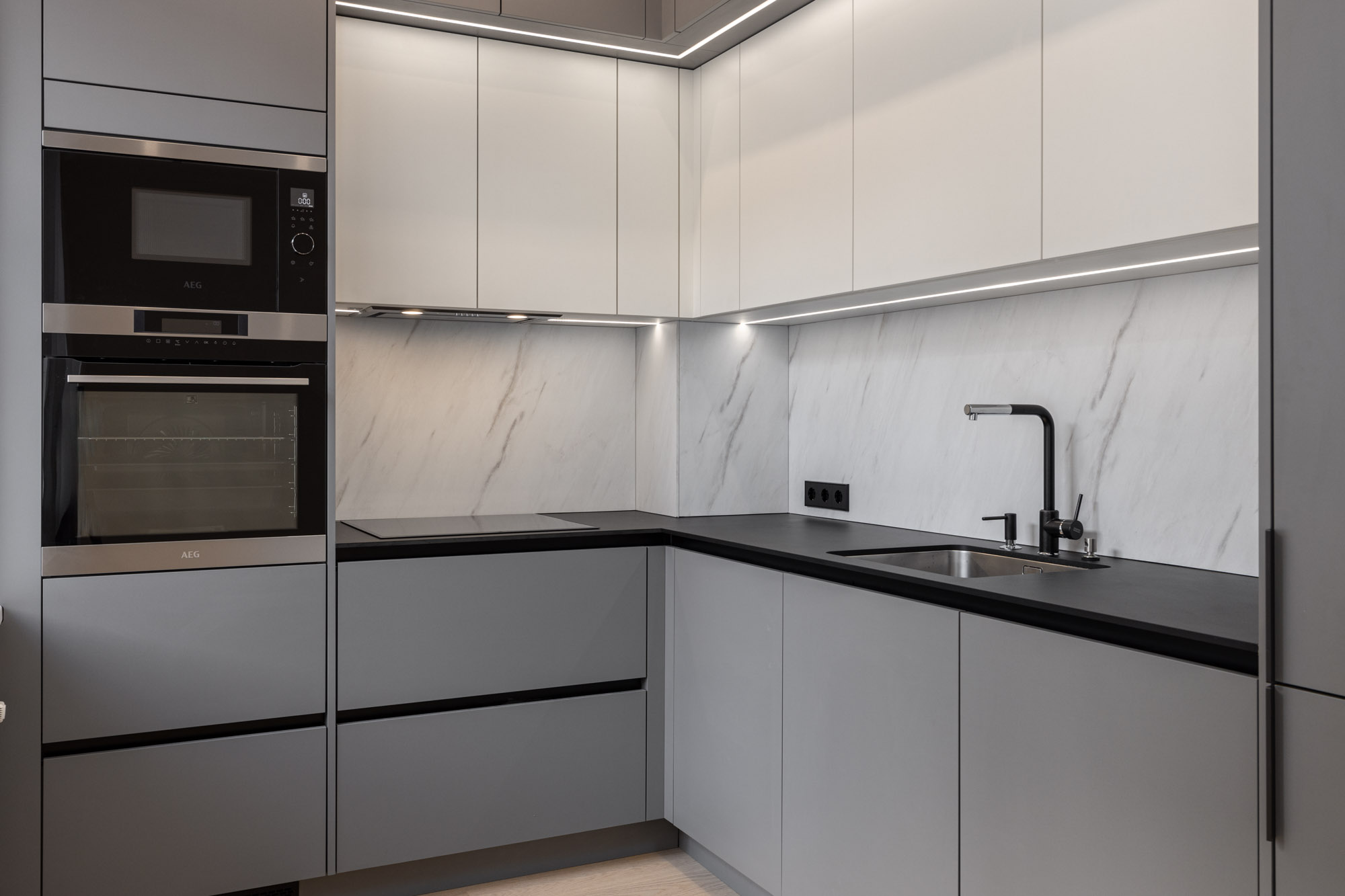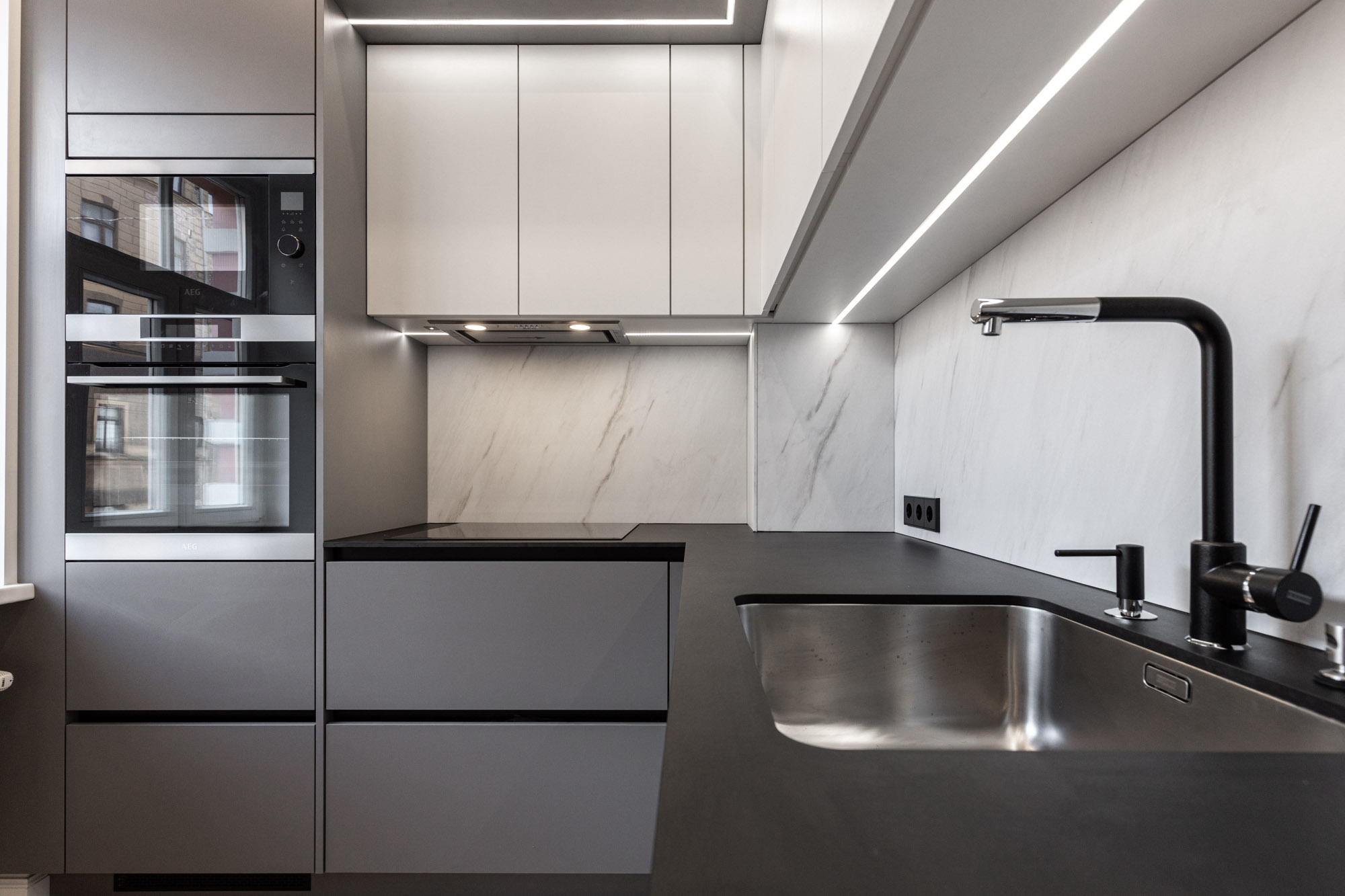 • Dzīvoklī ir iebūvēta virtuve ar sadzīves tehniku.